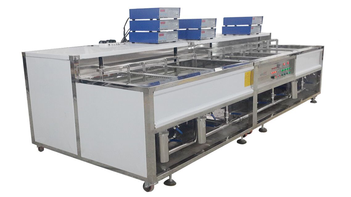 設(shè)備共有7個功能槽,配置有拋動系統(tǒng)、循環(huán)過濾系統(tǒng)、自動恒溫系統(tǒng)、超聲波清洗系統(tǒng)、定時系統(tǒng)、等。設(shè)備采用環(huán)保型水溶劑洗滌、純水漂洗,為環(huán)保型清洗系統(tǒng)。配電箱用全不銹鋼結(jié)構(gòu);
